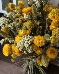 Gemengd Droogbloemen Biedermeier Boeket In Geel Wit En Groen