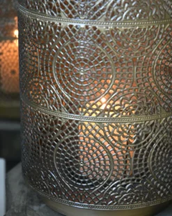 Groot Windlicht Met Sfeervol Gaatjes Patroon Antiek-look Messing