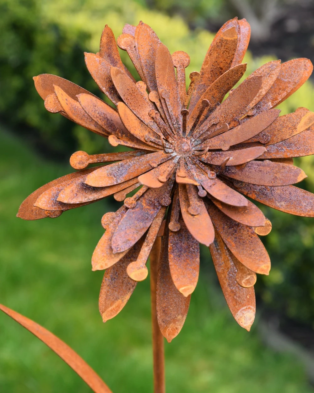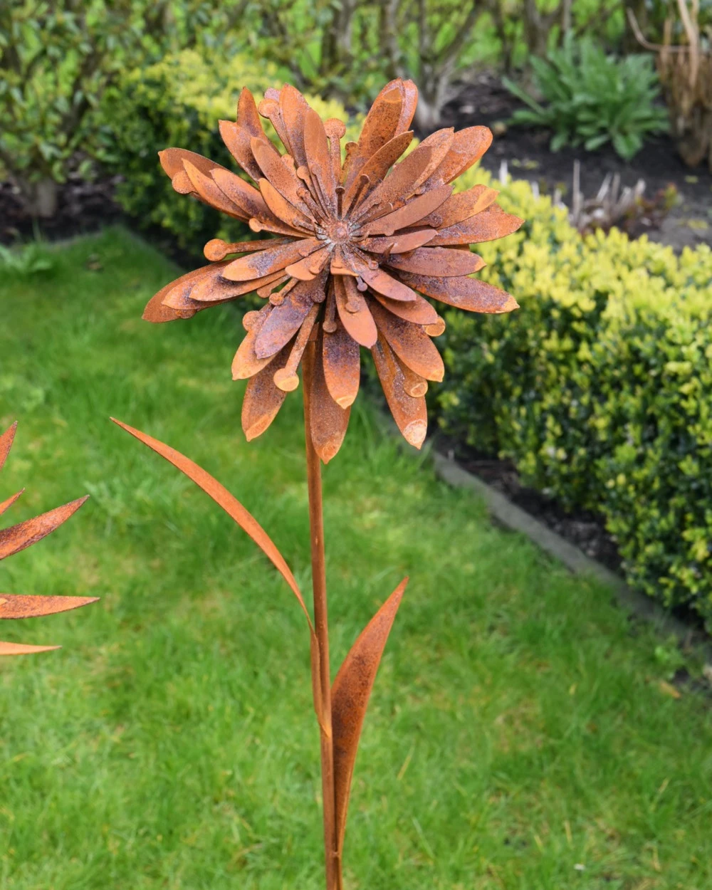 Bloemen tuinprikker Beemdkroon ecoroest. Deze mooie ecoroest tuin bloem de Beemdkroon ofwel de Knautia kunt u een mooi plekje in de tuin geven. De ecoroest bloem is mooi gevuld met heel veel bloemblaadjes die eventueel nog iets in de voor u juiste positie te buigen zijn. De gevulde Beemdkroon bloem staat op een lange steel met bladenen die u zo in de grond kunt steken, om zo het gehele jaar te genieten van bloemen in de tuin.