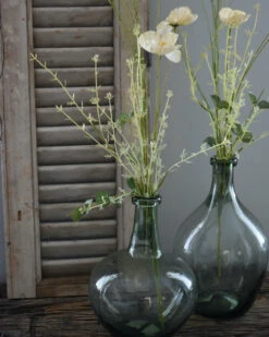 Bolle ballonvaas met groene gloed, IB Laursen per stuk. Deze mooie vaas is handgemaakt en heeft een transparante look met een groen accent. De mond geblazen fles vaas heeft een smalle hals met een omgevouwen rand. Doordat het een handgemaakt product is is iedere vaas uniek. De ballonvaas is ook in een iets grotere maat met net een ander model verkrijgbaar. Ze kunnen ook heel leuk gecombineerd worden en met een mooie tak gevuld, zoals op de afbeelding met een tak van IB Laursen of bv een mooie gras pluim.