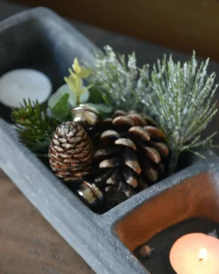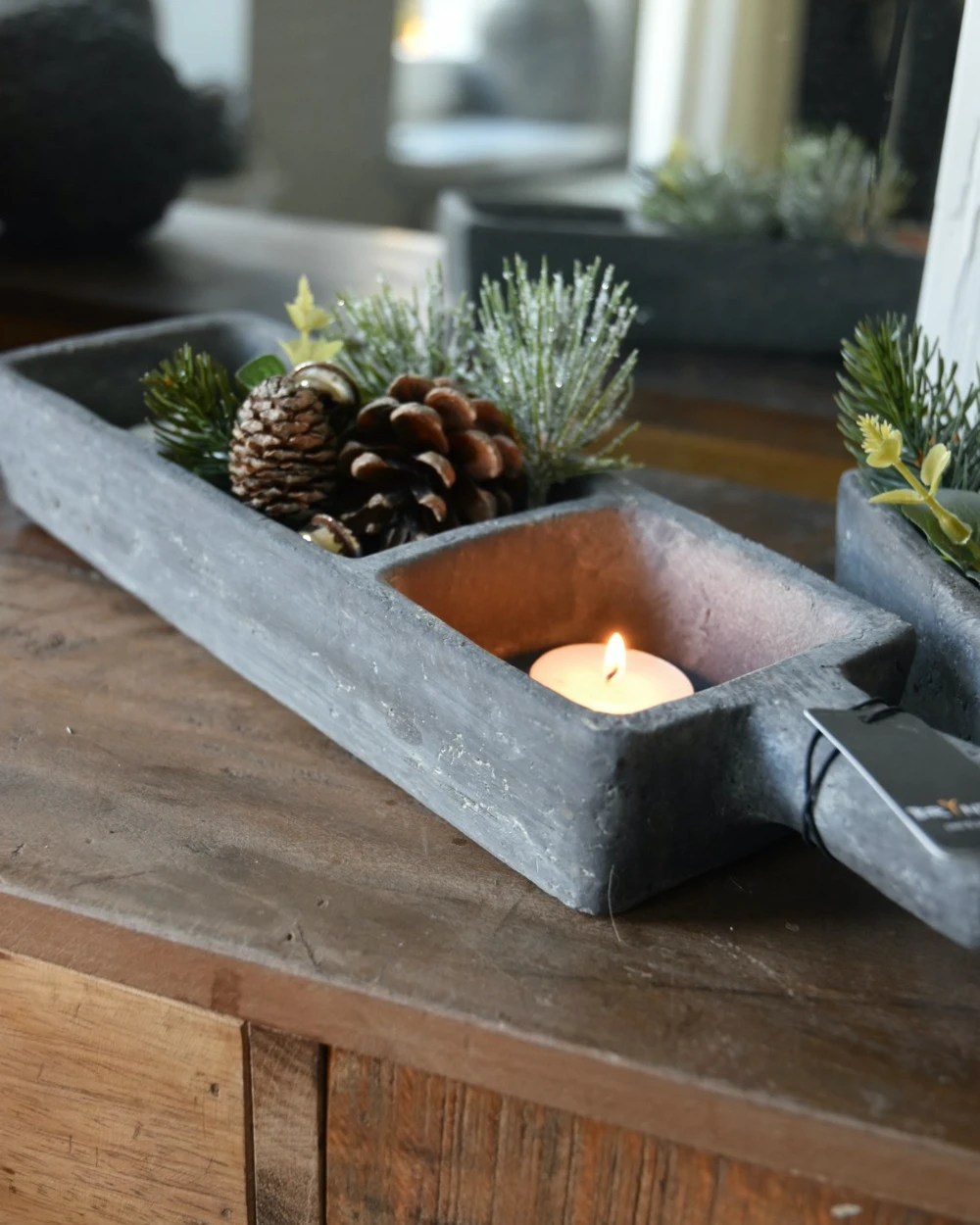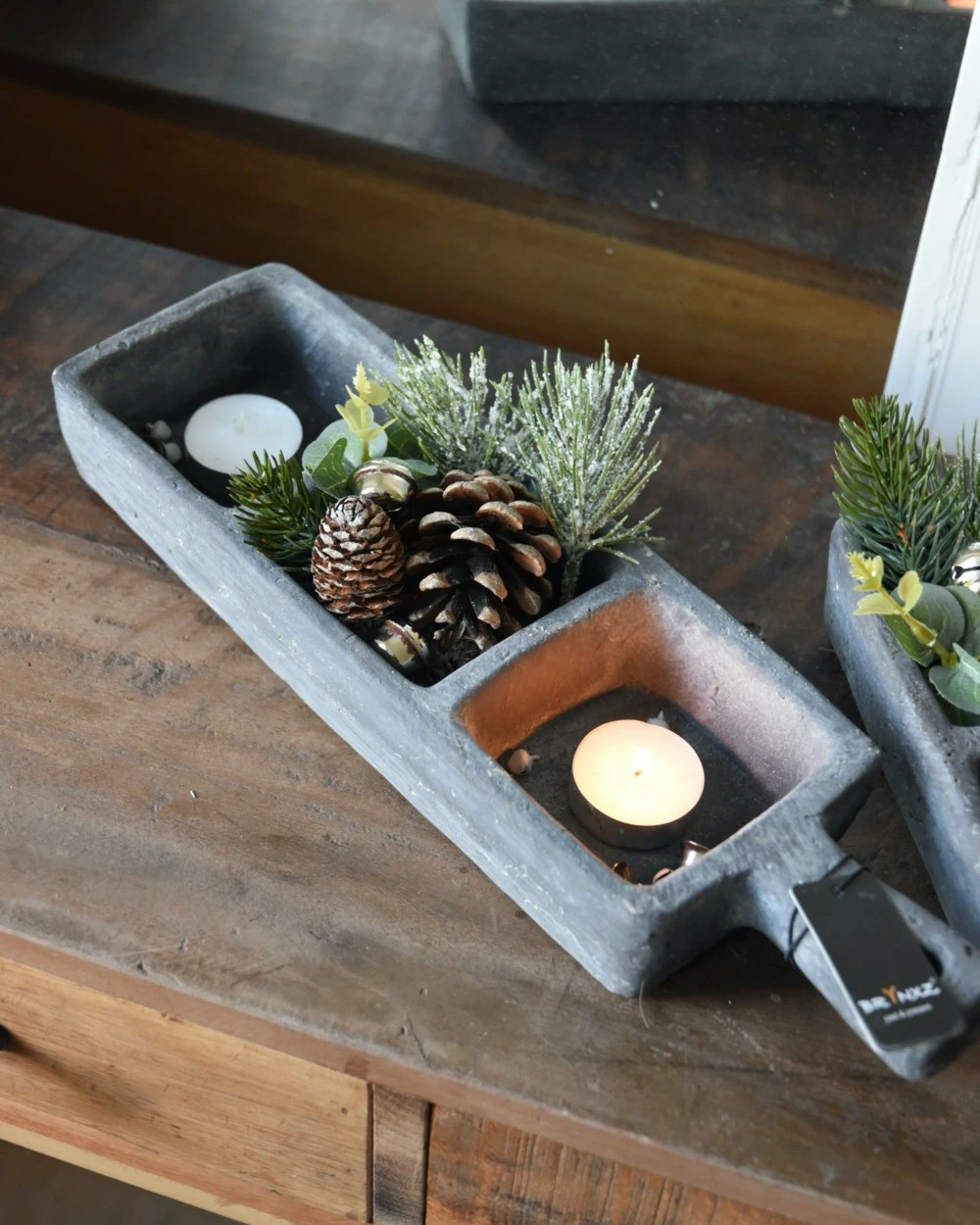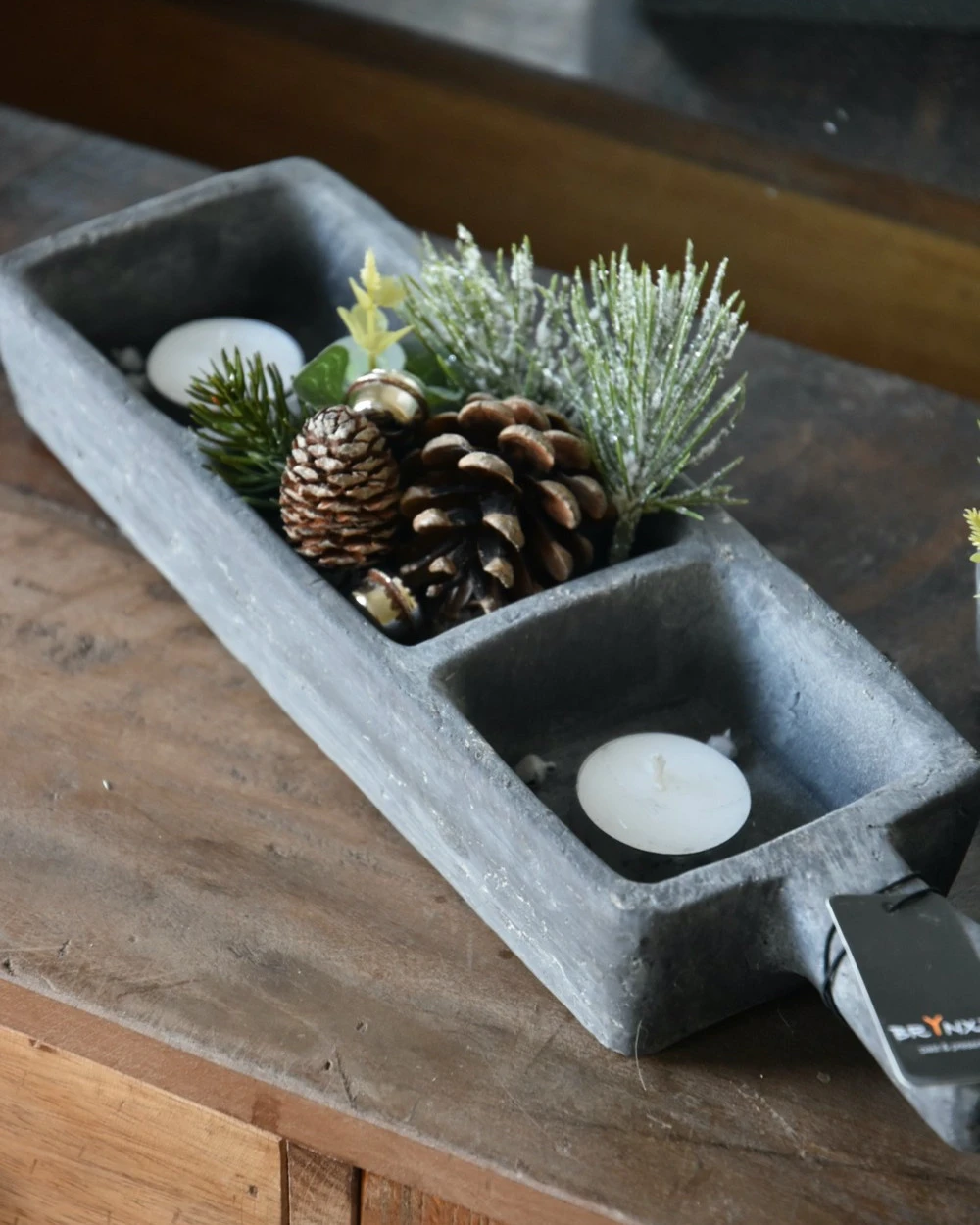 Compleet set met Brynxz vakkenbak groen decoratie en kaarsjes. Dit leuke set bestaat uit een drie vaks-bak met oor van Brynxz met daarin kerstgroen, dennenappels en belletjes in het ene vak en in het andere vakken een waxinelichtje met klokjes en belletjes. Het groen is kunst/zijde waardoor u er heel lang plezier van heeft. U kunt de bak zo neerzetten of leuk cadeau geven.