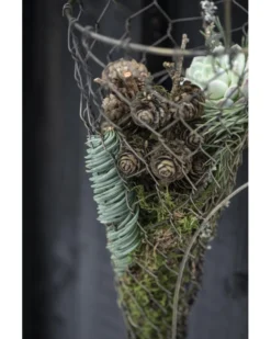Draadmand kegel antiek goud met lang hengsel, IB Laursen. Deze leuke mand van metaal draad is in een antiek gouden kleur. De mand heeft een kegel vorm met een groot lang hengsel, waarmee u hem eventueel kunt ophangen. De mand is liggend ook erg leuk waarbij u kunt kiezen om het hengsel op de mand of boven de mand te plaatsen. De mand te vullen alsof hij leegloop (zoals een mand des overvloeds) vullen met dennenappels, groen, lichtjes, gedroogde kruiden, …… Aan de schoorsteen mantel, het rekje in de keuken, op tafel of de aanrecht… Oneindig veel mogelijkheden met deze mand dus.