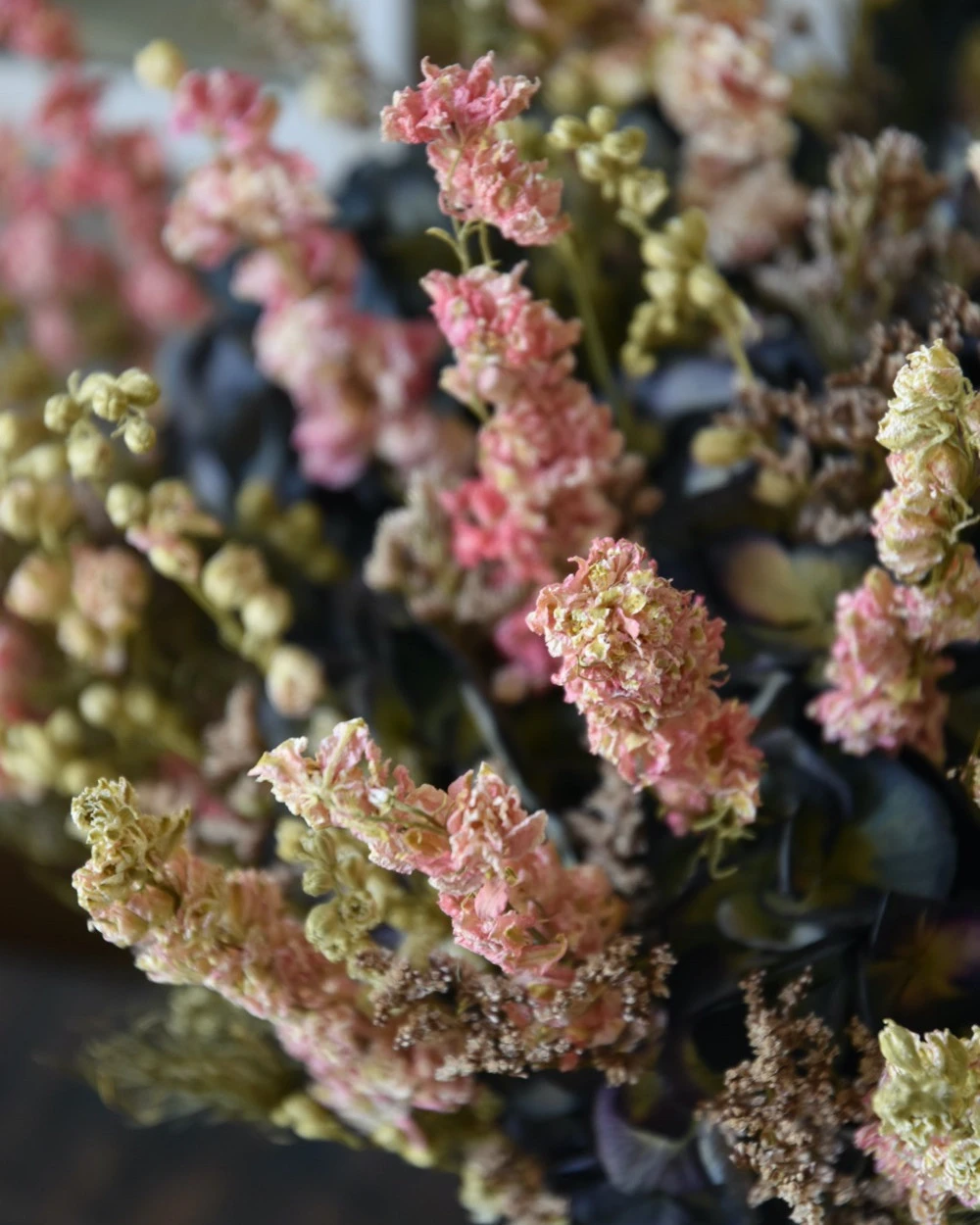 U kunt droogbloemen het beste uit de zon op een niet al te lichte plek zetten.