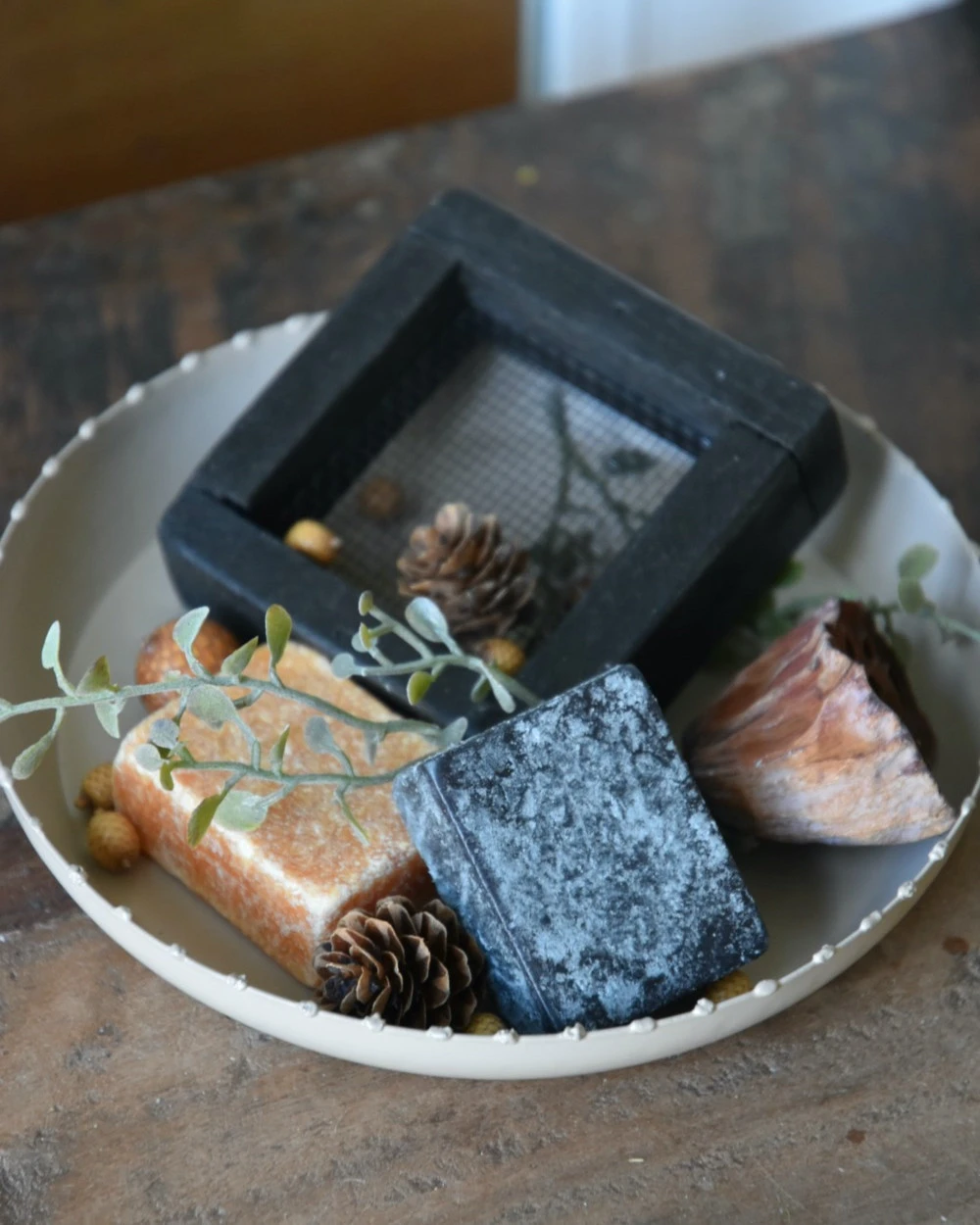 Geur-set twee Amber blokjes met schaaltje, rasp en decoratie. Dit leuke complete set van een taupe/zand kleurig metalen schaaltje, een zwarte retro rasp, een Amber blokje met Sandalwood geur, een Amber blokje met Musk geur en verschillende decoratie takjes en vruchten die het geheel afmaken (zit samen in een zwart organza zakje). Het complete set is ook erg leuk om cadeau te geven, vul dan de tekst voor het kaartje in en vergeet deze niet op te slaan. U kunt het gezellige geheel een mooi plekje geven. Wanneer de Amber blokjes iets minder zijn gaan ruiken kunt u er met de rasp een stukje afraspen om zo weer optimaal van de geur te genieten.