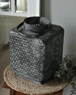 Groot Metalen Windlicht Met Weefpatroon En Hengsel, Vierkant