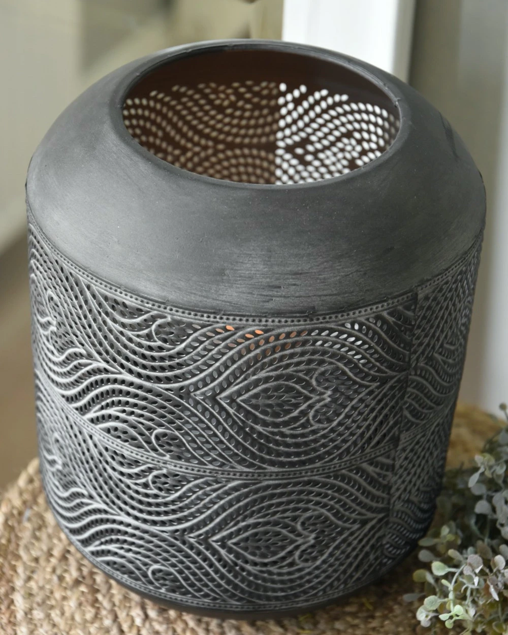 Groot Rond Metalen Windlicht Met Sierlijk Glooiend Gaatjes Patroon