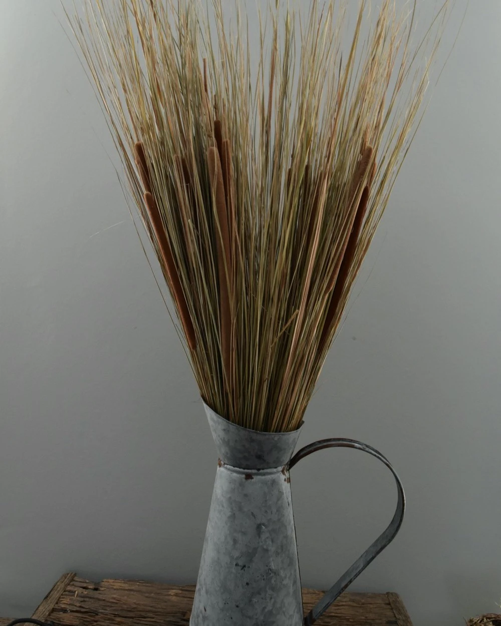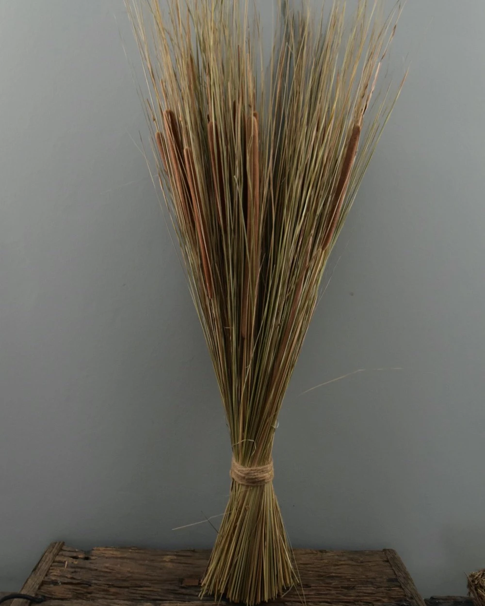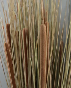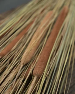Grote schoof van gras en rietsigaren. Deze grote bundel van grassen met Rietsigaren is met een mooi dik touw gebonden. De schoof staat zowel mooi op bv een krans houder als in een grote kan of vaas. De mooie natuurlijke graspluyimen met de bloei vormige sigaren geven uw interieur een mooie buiten sfeer.
