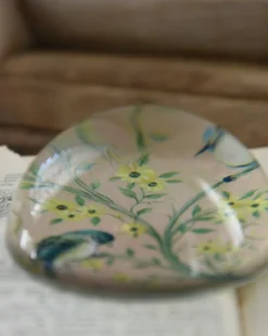 Halve bol van glas met vogels in pastel per stuk. Deze mooi decoratie halve bol heeft een pastel kleurige print met vogeltjes op een tak met bloemen. De zware presse papier kan mooi worden gebruikt om papier op zijn plaats te houden of decoratief uw boek op de juiste pagina open te houden. De presse papier zijn in verschillende uitvoeringen verkrijgbaar.