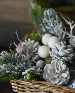 Kegel guirlande van Omerica kegeltjes, IB Laursen. Deze lange guirlande of dennenappel toef is van naturel Omerica kegeltjes. Aan een uiteinde zit een grote lus waarmee u de kegels kunt ophangen. De basis van de hanger is vrij stug waardoor hij gemakkelijk in een mooie sierlijk boog kan blijven en gemakkelijk tot een krans worden gedraaid, zoals u ook in de mand ziet. Het is ook erg leuk om hem recht naar beneden te hangen aan de deur of kast bijvoorbeeld.