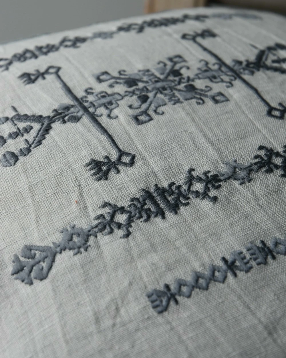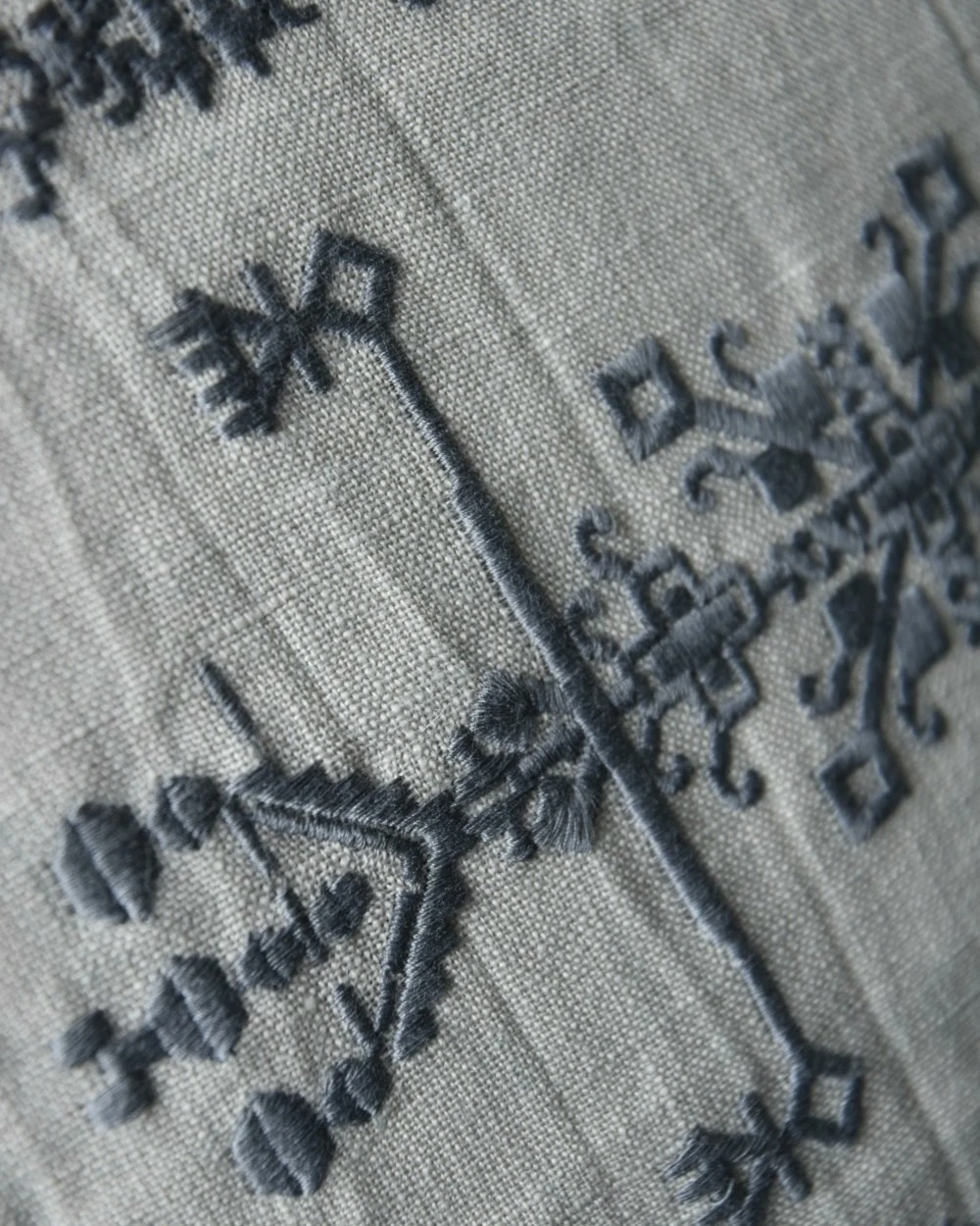 Kussen Hoes Linnenlook Met Grijs Borduursel, IB Laursen