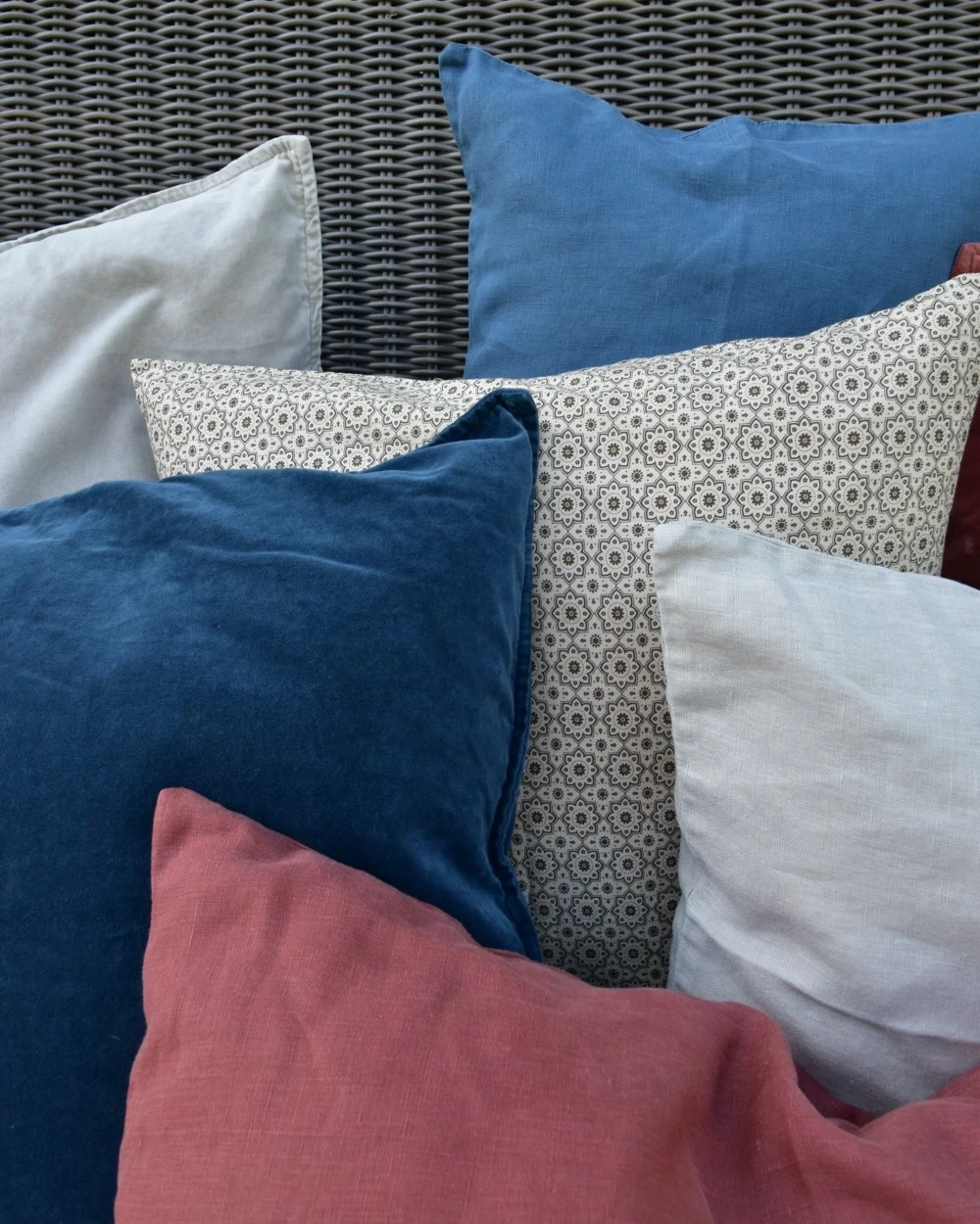 Kussenhoes rechthoekig historical blue, IB Laursen. Deze prachtige kleur blauw is uit de collectie van IB Laursen in een linnenlook. Het model is rechthoekig en de hoes heeft een mooi weggewerkt rits waar u het binnenkussen in kunt doen. Ook heeft deze lijn een velours kussen in het vierkant, maar hij wordt prachtig ‘rustig’ gecombineerd met de fog lijn en de beige bruine bloemenprent of met een beetje meer pit daarbij de rust collectie.
