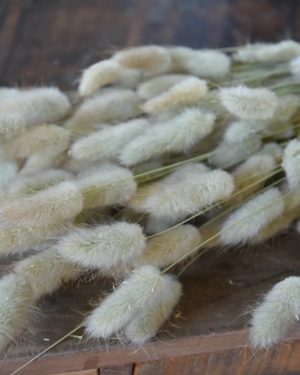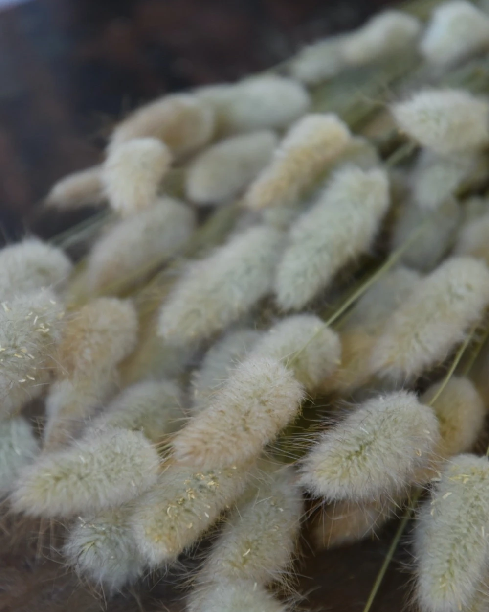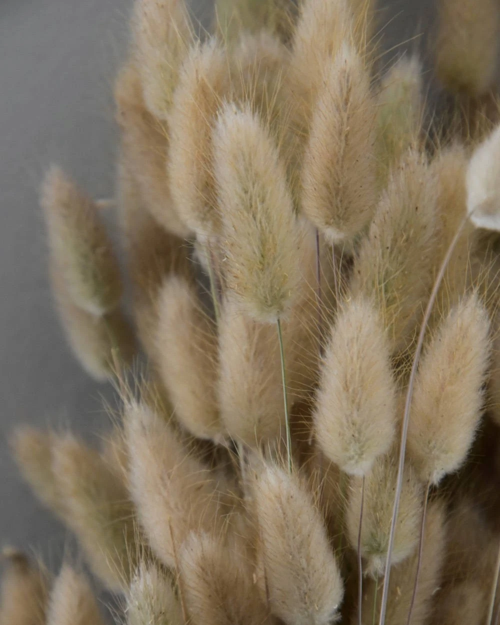 Lagurus Ovatus graspluimen per bos. Deze prachtige gedroogde Lagurus grassen hebben zachte bijna donzige ovale pluimen. De grassen zitten in een bos op heel veel verschillende lengtes en formaten van pluim. U kunt de grassen in een mooie kan decoreren of in een mooie mand bijvoorbeeld. Ook zijn het pluimen die gemakkelijk te verwerken zijn in een krans of ander creatief stuk.