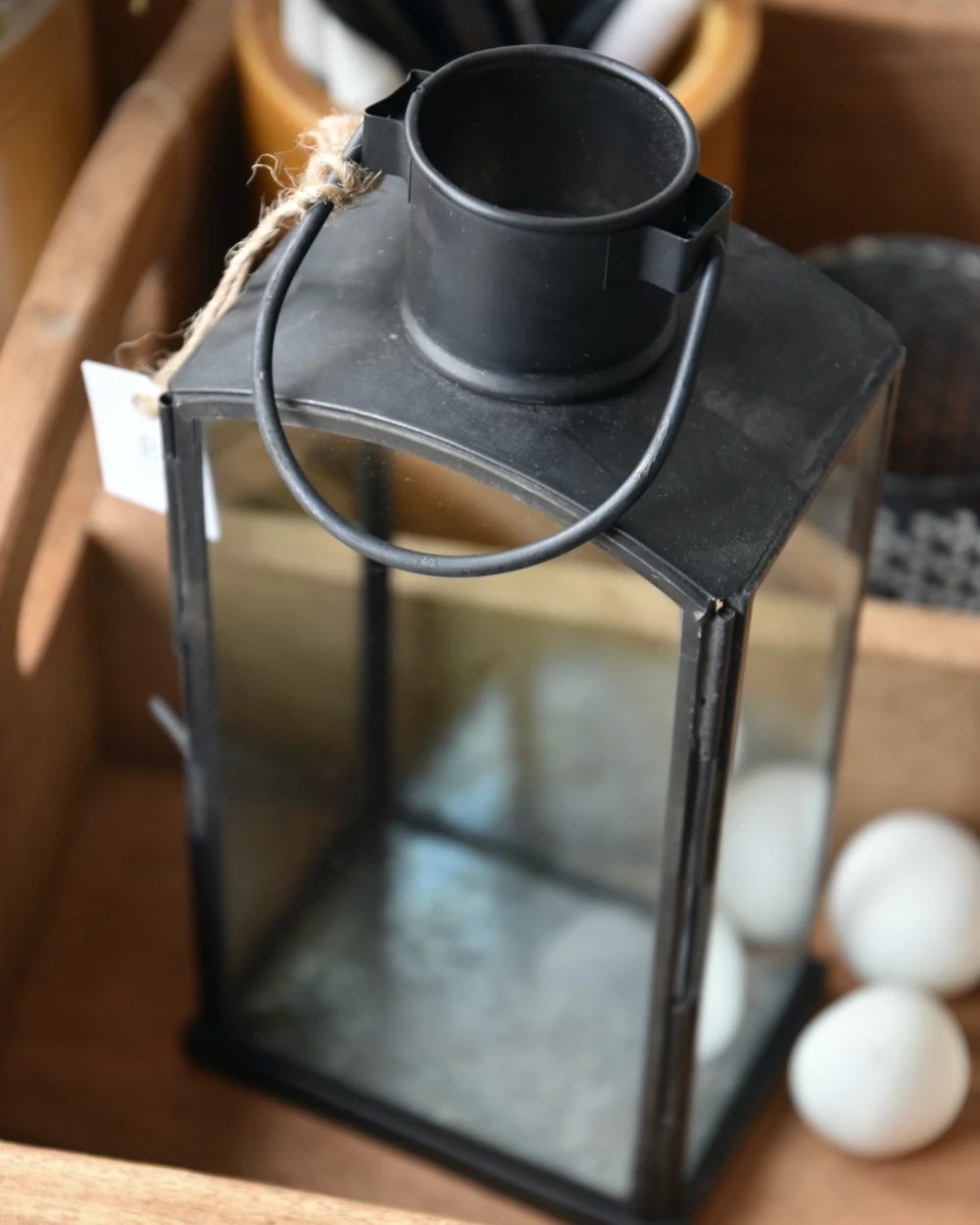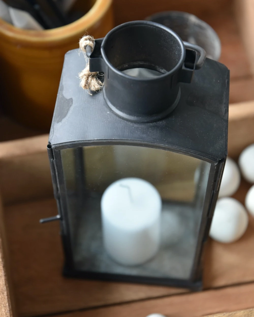 Lantaarn metaal zwart en glas met hengsel, IB Laursen. Deze elegante lantaarn heeft een frame van metaal in zwart met een zinken bodem. De bovenkant is iets rond en het glas loopt mooi mee. Het ronde ventilatie gat heeft een klein rond hengsel en er zit een deurtje aan de voorzijde zodat u er gemakkelijk een kaars in kunt plaatsen. De afwerking is met de hand gedaan hierdoor kunnen er kleine oneffenheden in deze lantaarn zijn, dit behoord tot het product. De leuke lantaarn kant gezellig op een bijzettafel, in een ‘smalle’ vensterbank of ….. worden geplaatst om een gezellige sfeer te creëren.