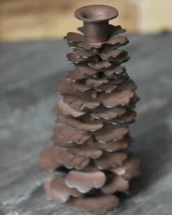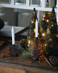 Metalen boom kandelaar, IB Laursen. Deze leuke kandelaar is van metaal gemaakt en in vorm van een boom. De boom is door takken gelaagd omhoog gewerkt met i de top een kaarseninzet. De mooie warme naturel tint past goed in het geheel en kan dan ook heel goed worden gecombineerd met natuurlijke materialen zoals hout en groen. In de kaarseninzet past een smalle tafelkaars. Uit deze serie zijn ook Dennenappels en rendieren verkrijgbaar.