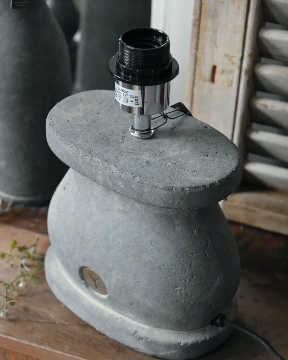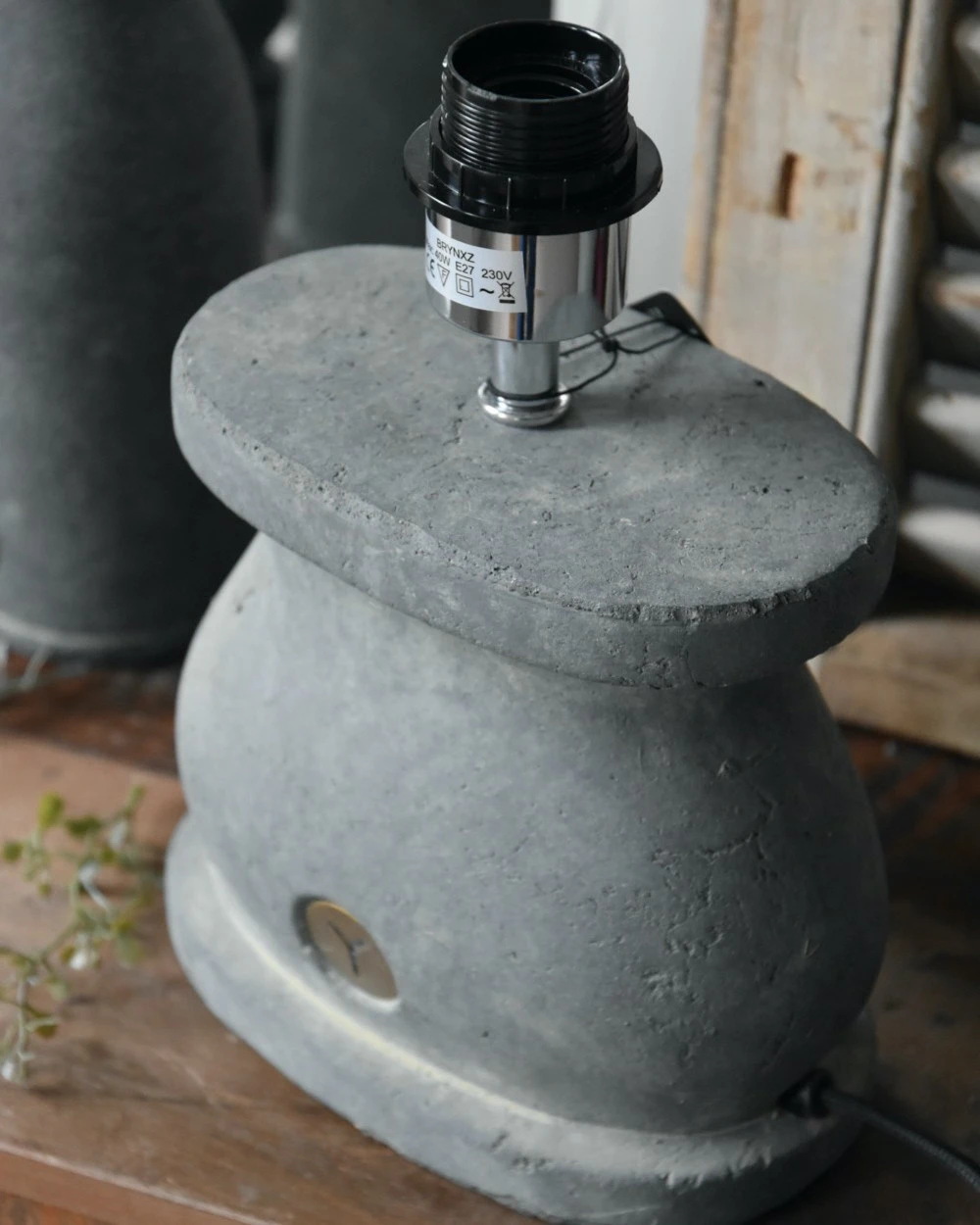 Ovale lampenvoet van aardewerk in Majestic grijs, Brynxz. Deze mooie elegante lampenvoet heeft een ovaal model met mooie bollingen. De aardewerk voet is et Majectic grijs afgewerkt en heeft een koord snoer met een schakelaar in. het zwart. De fitting heeft een kogelkop zodat u de kap altijd recht kunt zetten en het is een normaal formaat fitting. Aan de voorzijde zit het Brynxz logo verwerkt en de voet kan mooi worden gecombineerd met de potten, kandelaren e.d. uit de Majestic serie van Brynxz.