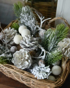 Wees de eerste om “Rieten Mand Gevuld Met Besneeuwd Groen En Witte Dennenappels” te beoordelen Reactie annuleren