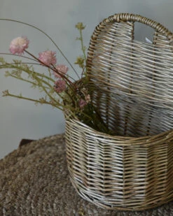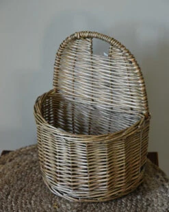 Rieten wand mand half rond, IB Laursen. Deze leuke mand heeft een platte achterkant waardoor hij ook erg leuk opgehangen kan worden. De mand is van riet, half rond en ook een half ronde achterkant met een vierkant gat zodat u hem gemakkelijk aan het keukenrek bijvoorbeeld kunt handen. De mand staat erg leuk met een kunstplantje of wat bloemetjes, handig met wat uien in de keuken……
