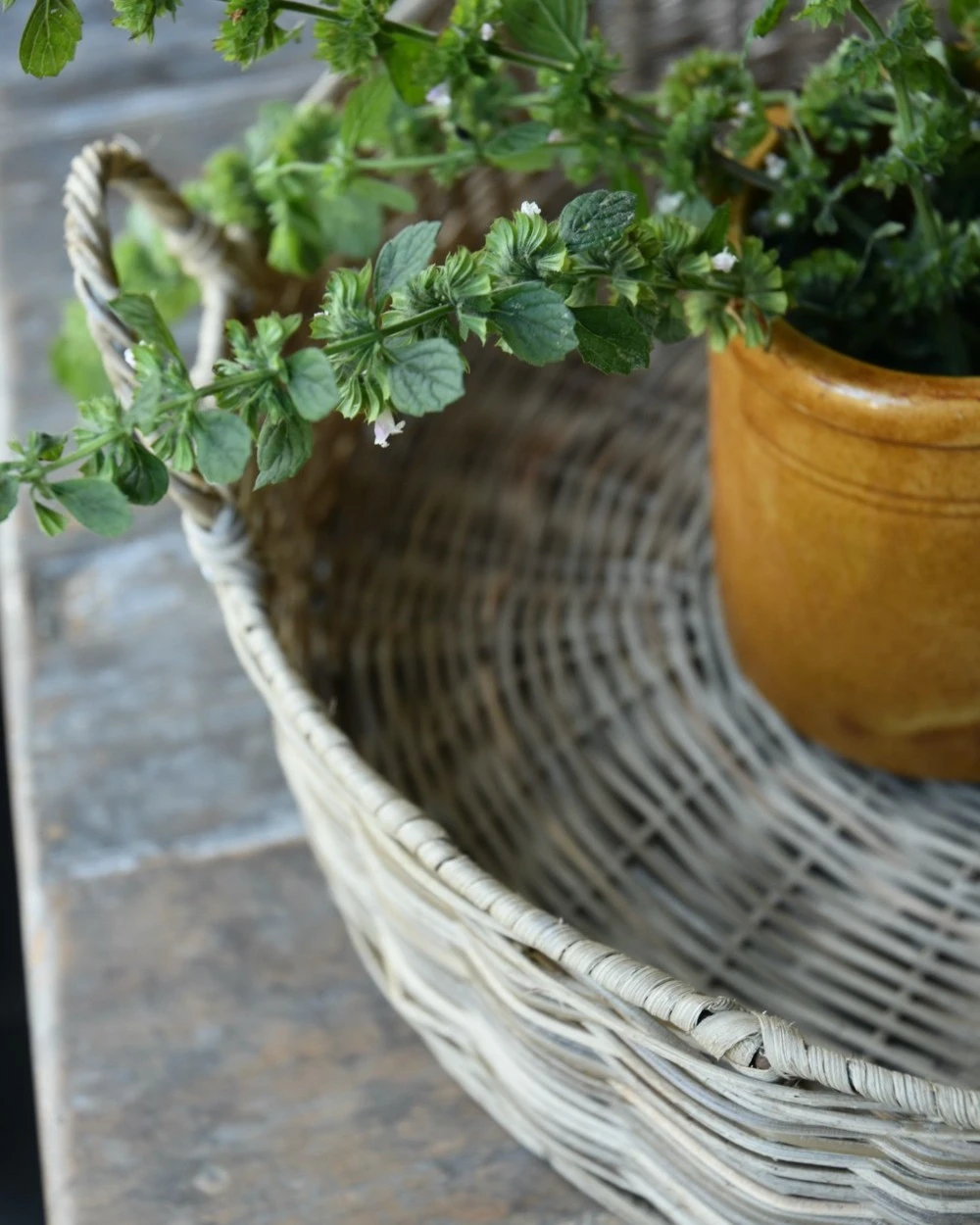 Rond Grijzig Rotan Dienblad Met Hengsels, IB Laursen