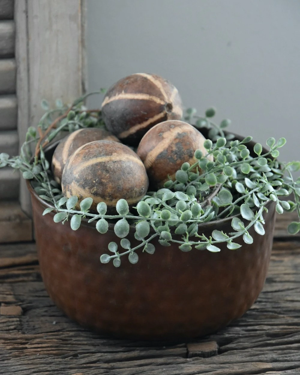 U kunt de heel mooi gebruiken op bijvoorbeeld het aanrecht of de keukentafel met gedroogde bonen en vruchten en een tak. Of opmaken met vetplanten, mos wat dennenappels…. (let op, wij adviseren altijd om een binnenschaal of plastic te gebruiken voor het behoud van de schaal of pot). Deze schaal kent heel veel mogelijkheden en is ook in een grotere variant verkrijgbaar.