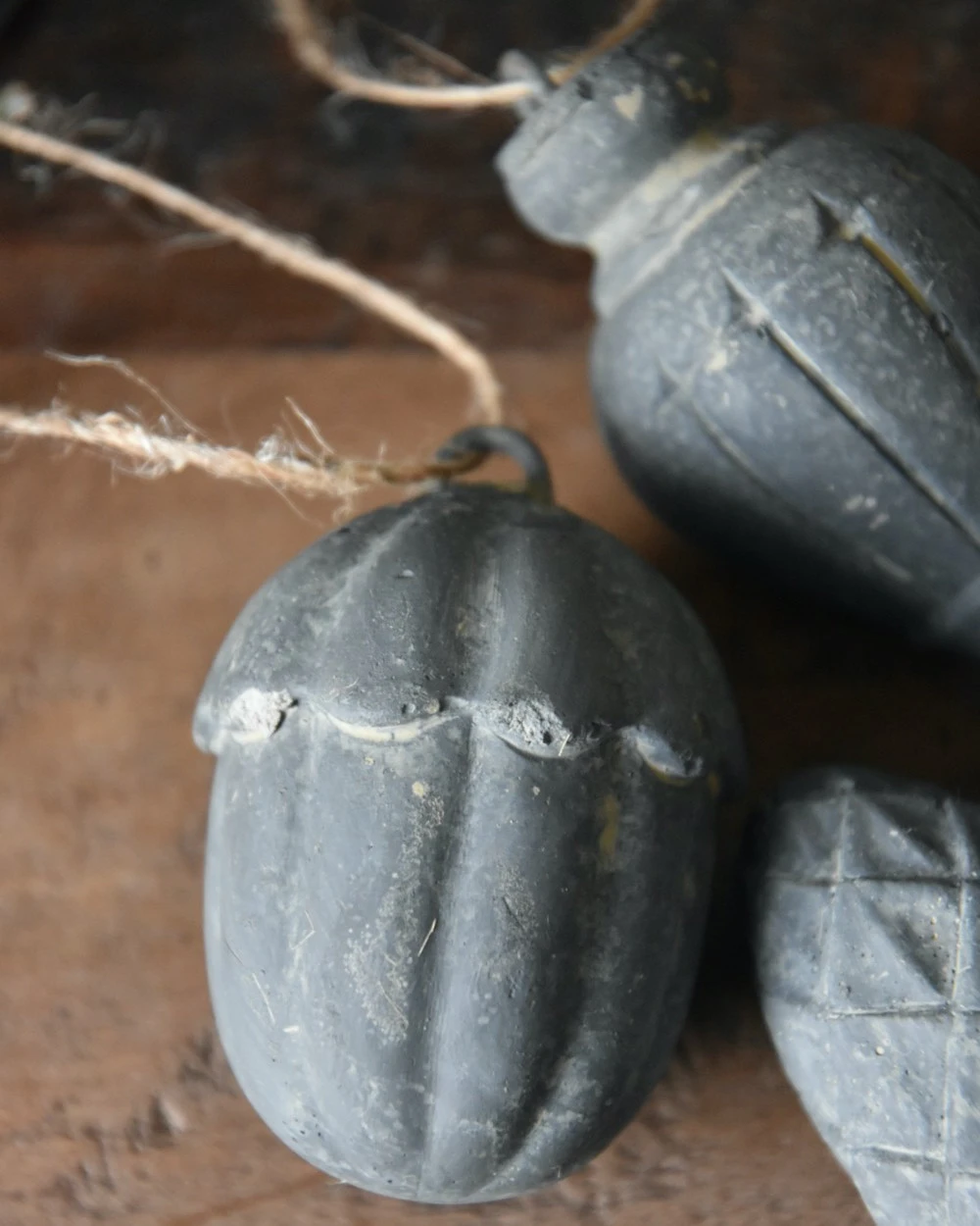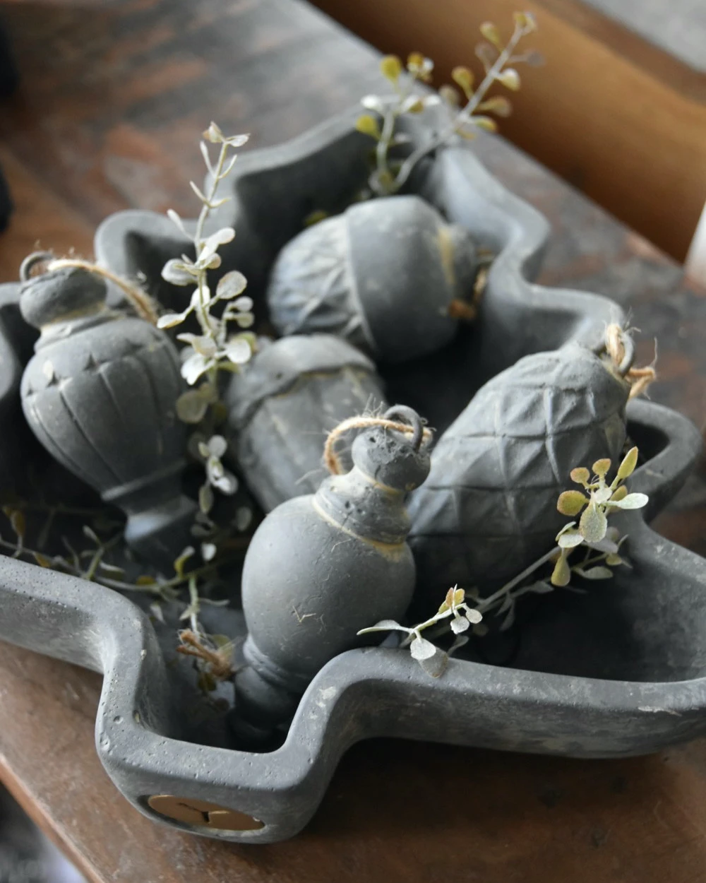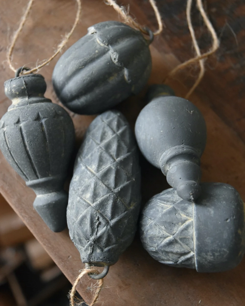 Set van 5 verschillende aardewerk hangers, Brynxz. Dit leuke set met 5 verschillende hangers van aardewerk in het grijs hebben elk hun eigen model met ieder een eigen patroon en accenten. U kunt ze leuk in een mooie schaal leggen, of ze hangen in een stevige boom, toef of haak. De hangers zijn door hun kleur en model in het najaar winter en met de kerst erg leuk, maar kunnen eigelijk altijd wel.