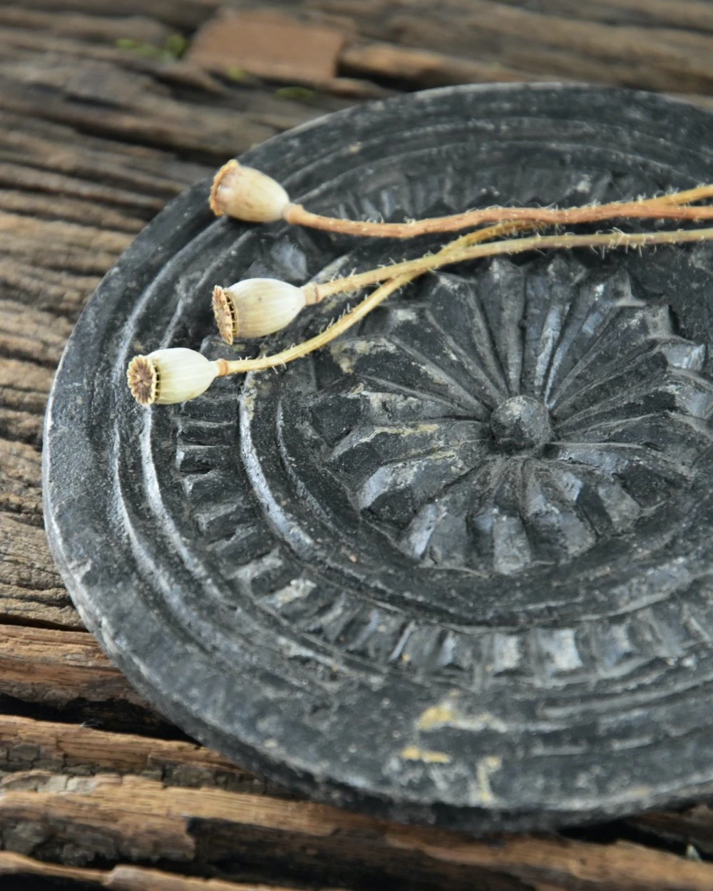 Dit rond bord heeft een prachtig uitgehouden patroon van een bloem. Dit bord is handgemaakt en daardoor uniek von vorm. Het bord komt uit de collectie van IB Laursen. U kunt het bord met bv een klein droogbloemen toefje of een stolp decoreren.