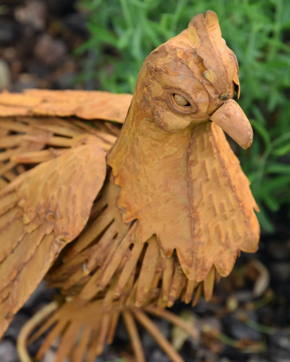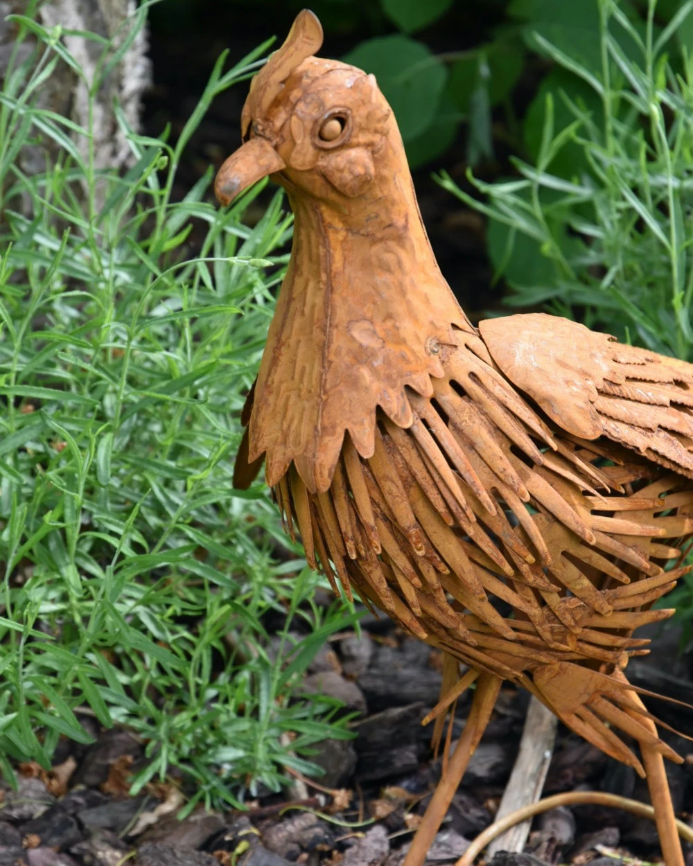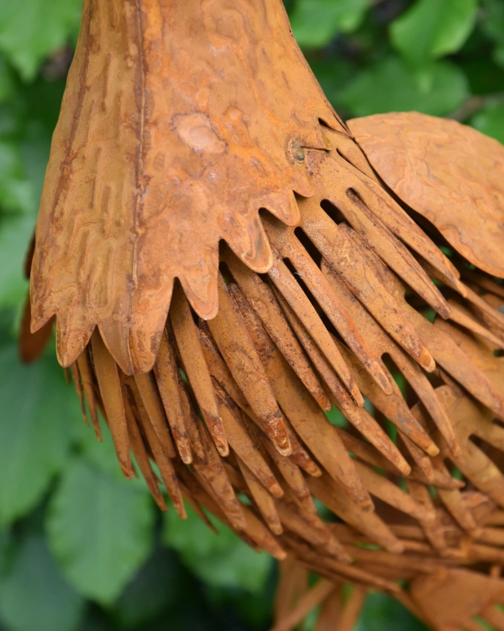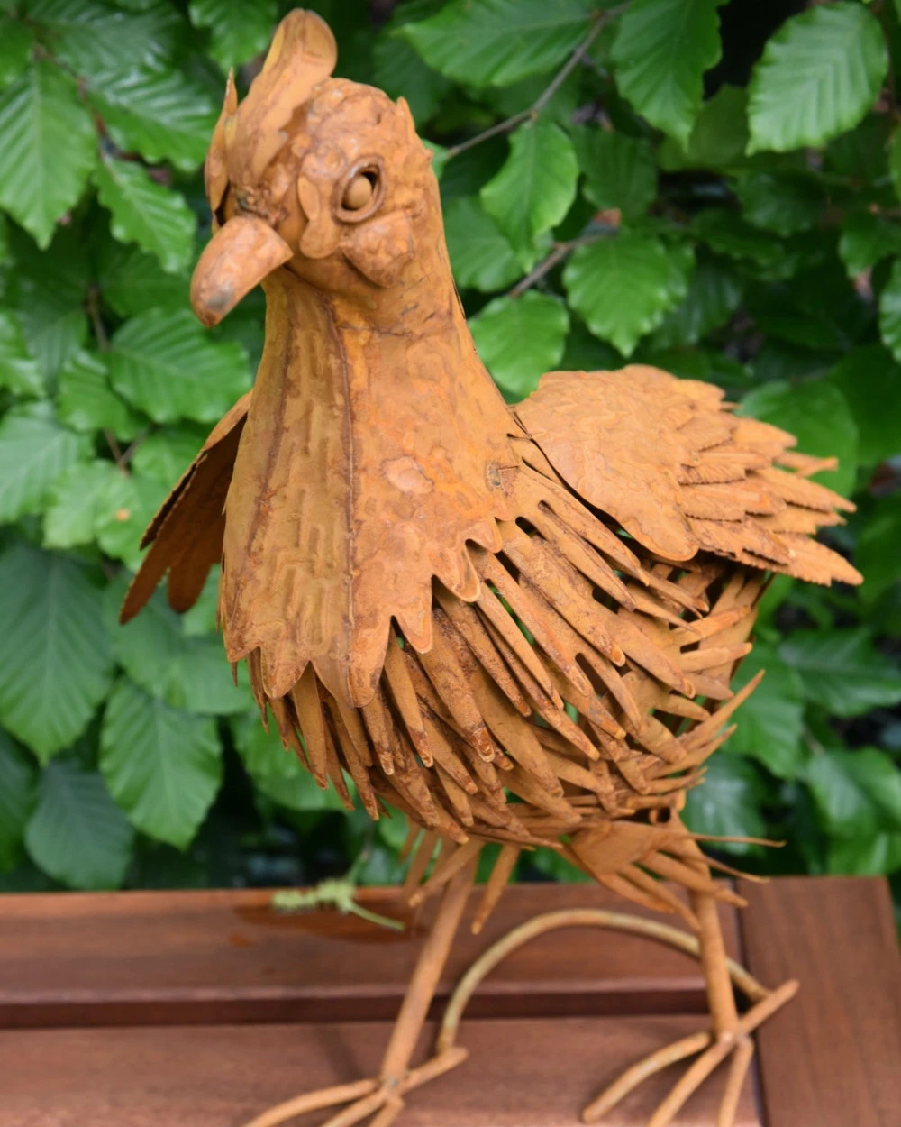 Tuinvogel in 3D de Fazant. Deze prachtige Fazant is van metaal en ‘blik’ gemaakt die dor een speciale behandeling een mooie roestlaag heeft gekregen. De mooie details in de vogel maken het zoals een Fazant, een parmantige indruk. De kop met zijn kuif, het verendek, de poten en de lange staart… U kunt de Fazant een mooi plekje in de tuin bv geven, om zo te genieten van deze gedaante.