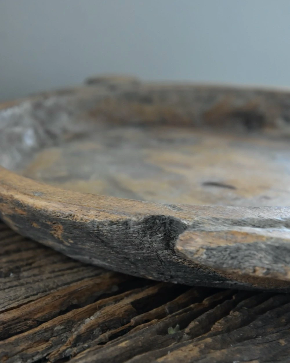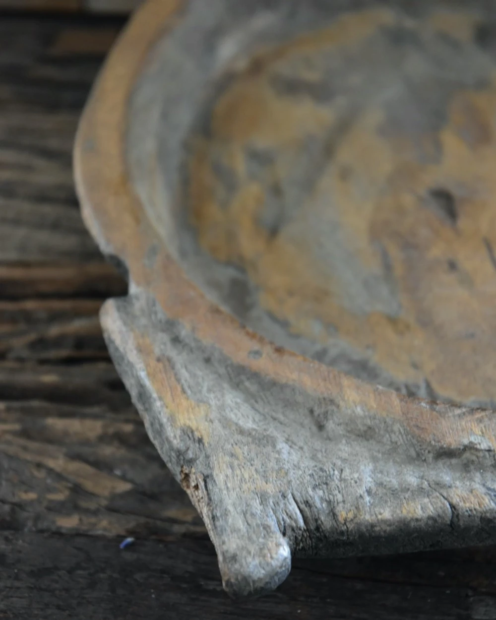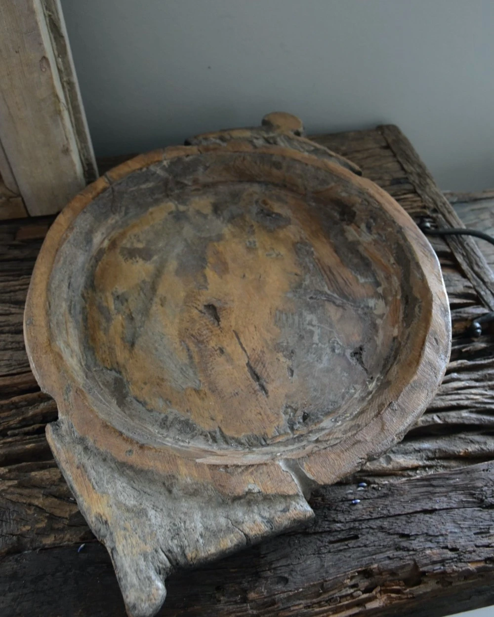 Uniek houten chapati met oren. Deze oude houten chapatie heeft twee oren en is prachtig verouderd. De kleuren in het hout en de slijtage geeft een prachtig karakter aan dit item. De chapati komt uit de collectie van IB Laursen.