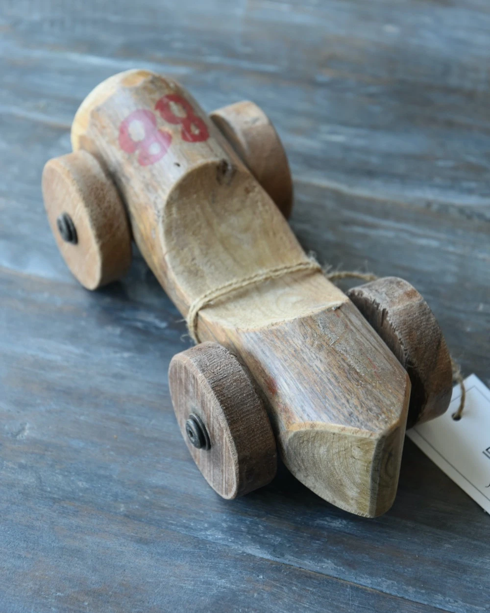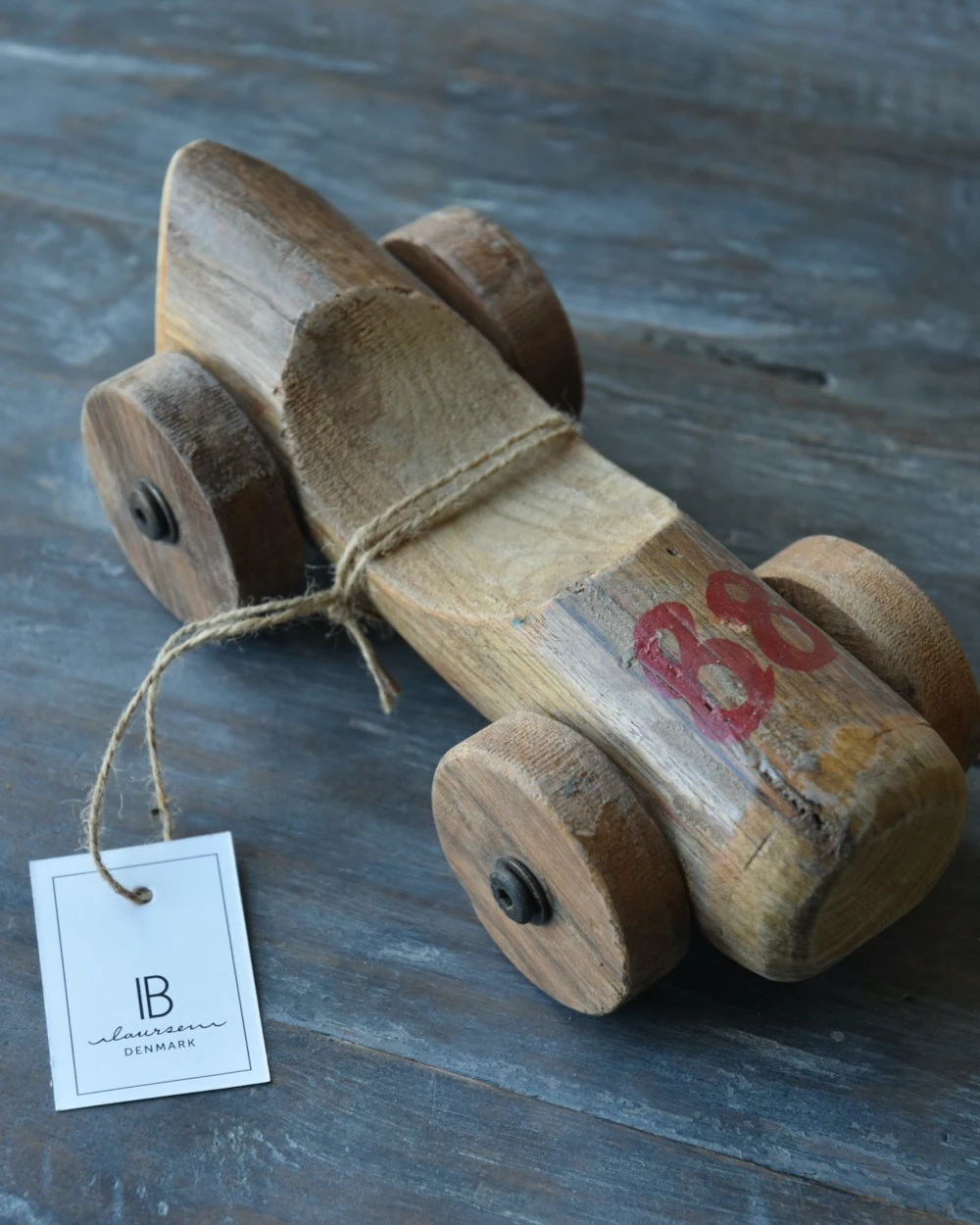 Unieke houten race auto met rood nr 88, IB Laursen. Deze unieke race auto nummer 88 als woondecoratie is van vrij zwaar hout in een naturel tint met het cijfer 88 in het rood. De vintage auto is van gebruikt hout met de hand gemaakt waardoor er een uniek en authentiek uiterlijk ontstaat vol karakter. Zo is er geen tweede auto. U kunt de auto in een mooie vitrinekast/boekenkast decoreren, of op de tafel/lage kast….. (ook leuk op de kinderkamer)