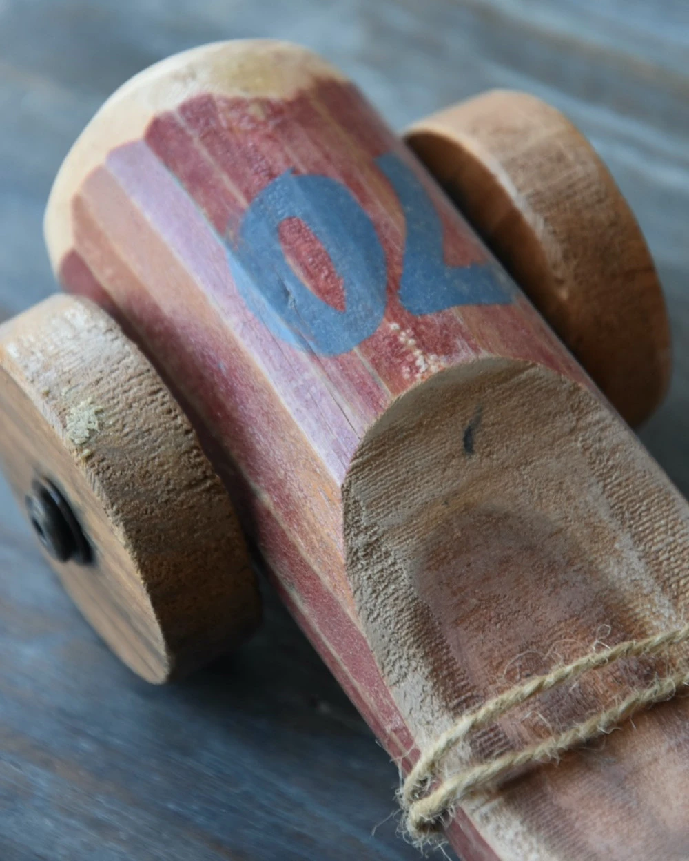 Unieke Rode Houten Race Auto Met Een Blauw Nr 70, IB Laursen