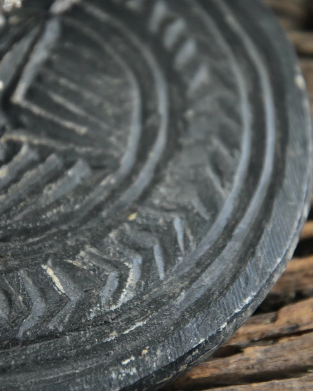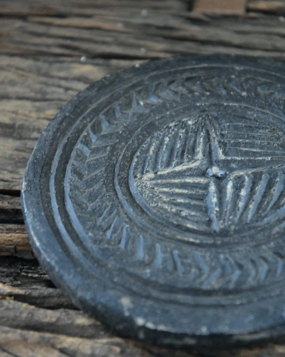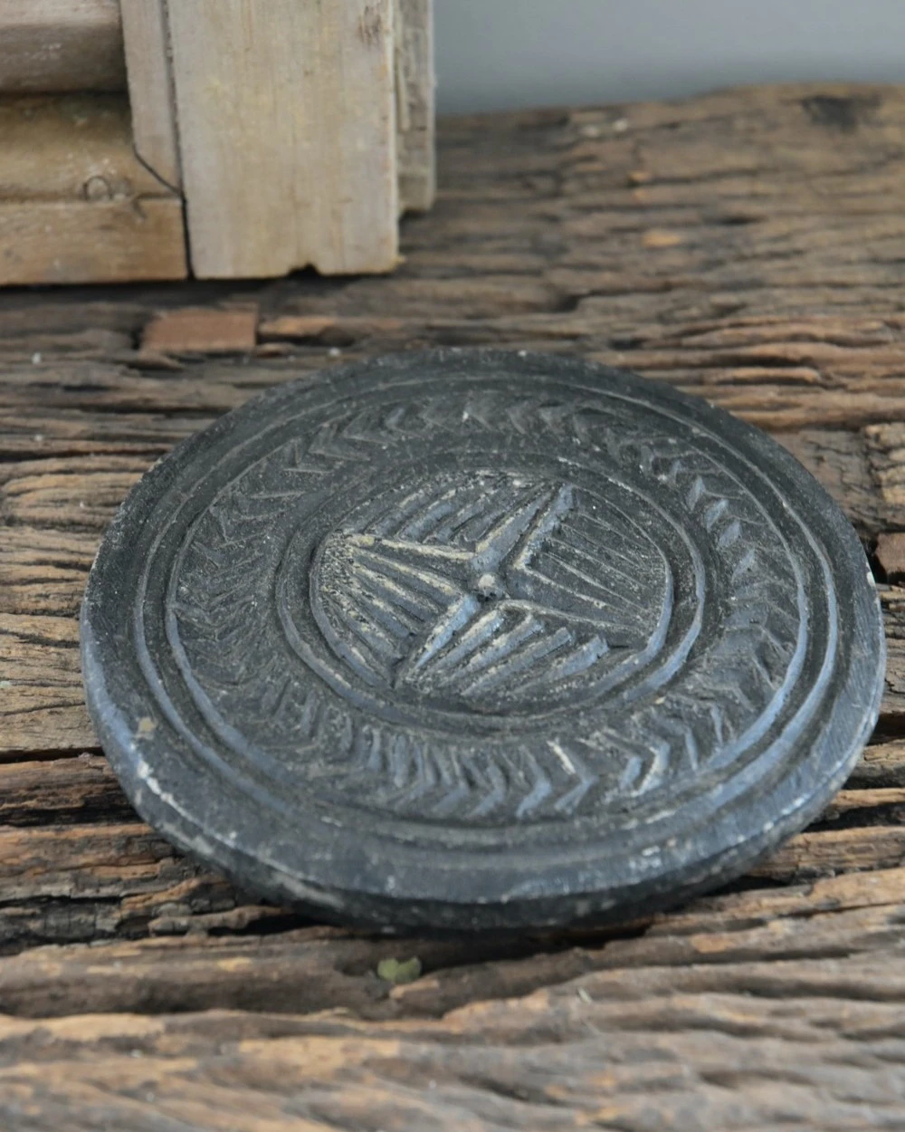 Unieke stenen onderzetter van IB Laursen. Dit ronde stenen onderzetter is met de hand uitgesneden. de mooie vorm heeft een krachtig patroon wat sierlijk genoeg van zichzelf is. Deze ‘onderzetten’ kan heel goed gebruikt worden in combinatie met een glazen stolp en wat takjes. Ook is het leuk om wat verschillende exemplaren bij elkaar te zetten met een kaars erop.