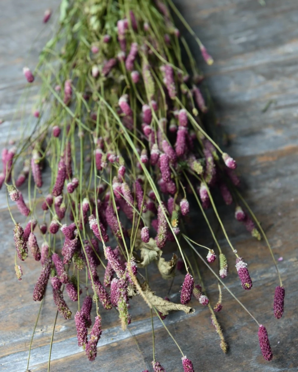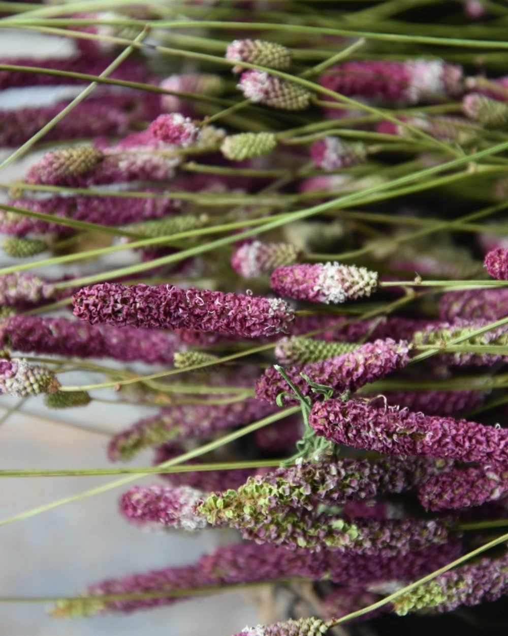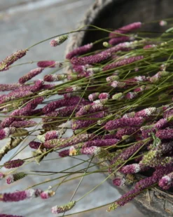Warm violet gedroogde Sanquisorba, Pimpernel. Deze prachtige Pimpernel heeft een prachtige rijke donker roze kleur. De aren van de bloem staan speels in een vaas of kan. Het is ook leuk om de droogbloemen te mengen met andere soorten, dan raden wij u aan om wat kleine fijne bloemen te gebruiken, om alles goed tot zijn recht te laten komen.