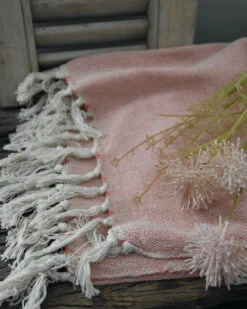 Woonkleed cream/faded rose met kwastjes, IB Laursen. Deze sprei/plaid heeft een mooie in elkaar geweven roze en crème kleur. Het woonkleed heeft aan de uiteinden kwastjes in de crème kleur. Het kleed kan mooi worden gedrapeerd over een stoel of mand, maar is zeker ook heerlijk om op een kille avond over je benen te leggen.