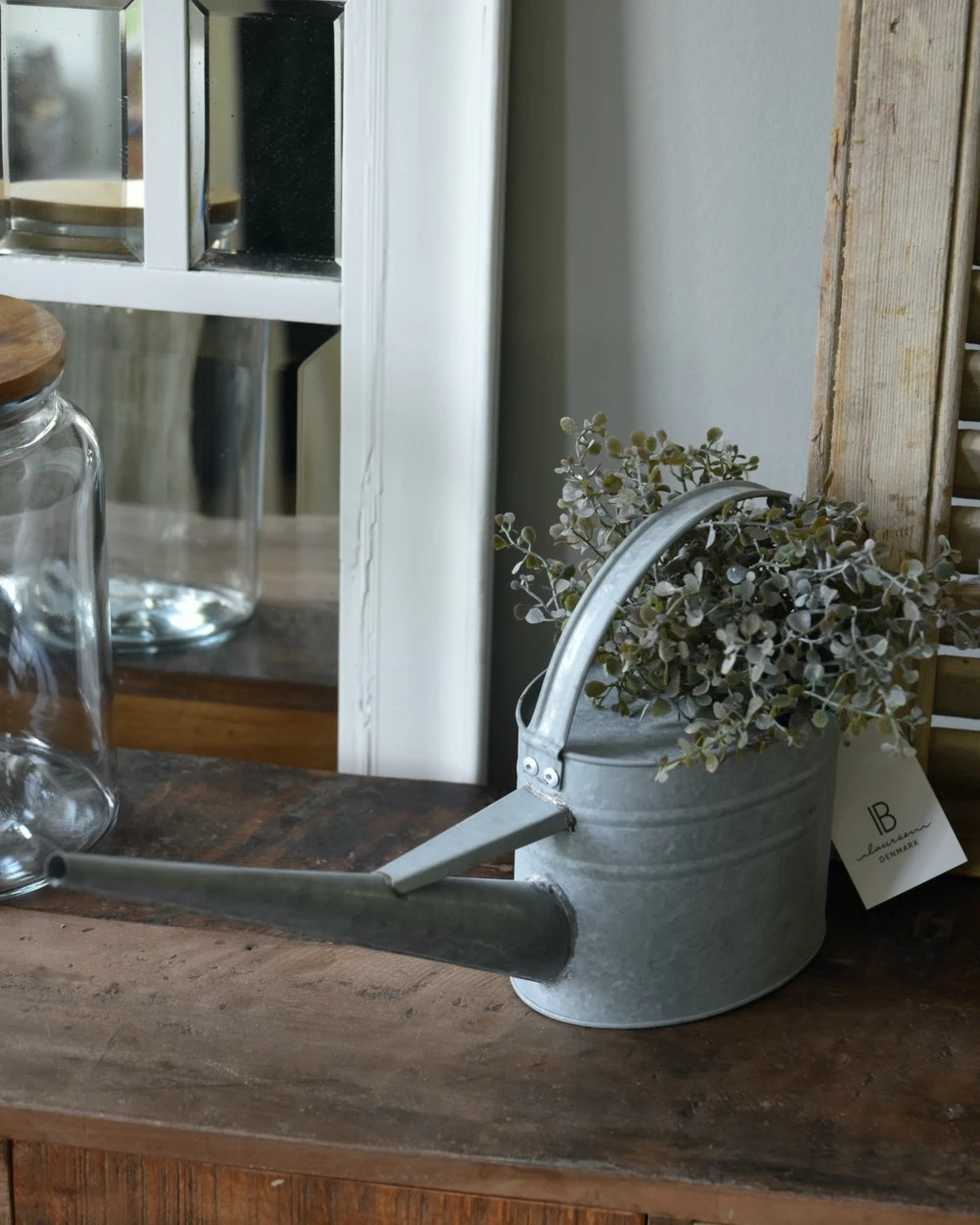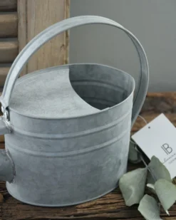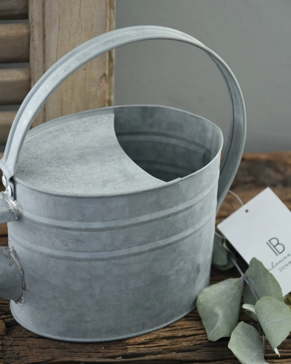 Zinken gieter, IB Laursen. Deze leuke gieter is van zink gemaakt en heeft een lange tuit en een groot rond handvat. Het eenvoudige maar leuke ovale model komt goed tot zijn recht. U kunt de gieter niet allen functioneel gebruiken maar ook leuk met wat droogbloemen decoreren bijvoorbeeld. De gieter heeft een inhoud van 1,4 liter.